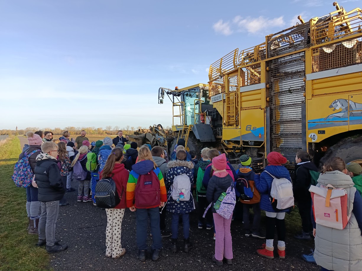 Am Donnerstag, den 30.10.2025 machten sich alle dritten Klassen auf den Weg zu einem sonnigen und herbstlichen Wandertag, der sie nach Prussendorf und weiter nach Spören führte. Um 8 Uhr starteten die Schüler mit viel Vorfreude und einem klaren Ziel vor Augen: die Zuckerrübe und die landwirtschaftlichen Maschinen hautnah zu erleben.