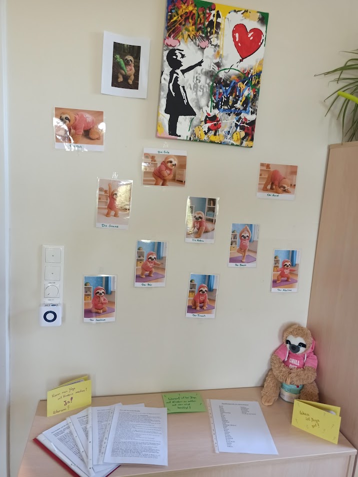 In der Kita "Max und Moritz" sorgt ein ganz besonderes Kuscheltier für Begeisterung und Bewegung: Flora, das Faultier. Flora ist nicht nur ein niedliches Stofftier, sondern auch eine kreative Yoga-Lehrerin für die kleinen Kinder.